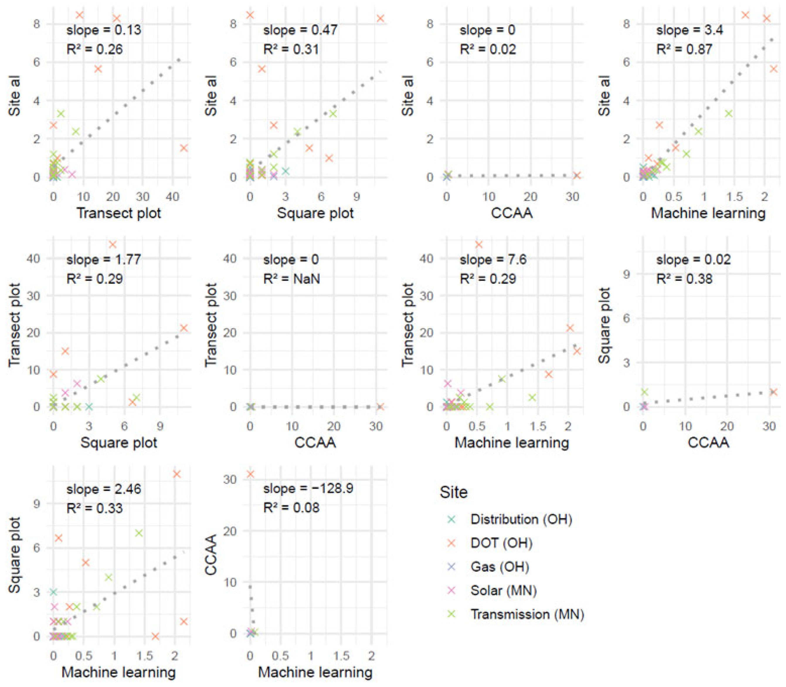 | Machine learning | Transect plot | 2.6 | 0.41 | 0 | 0 | 0.5 | 0.18 | 0.6 | 0.07 | −0.2 | 0.04 |