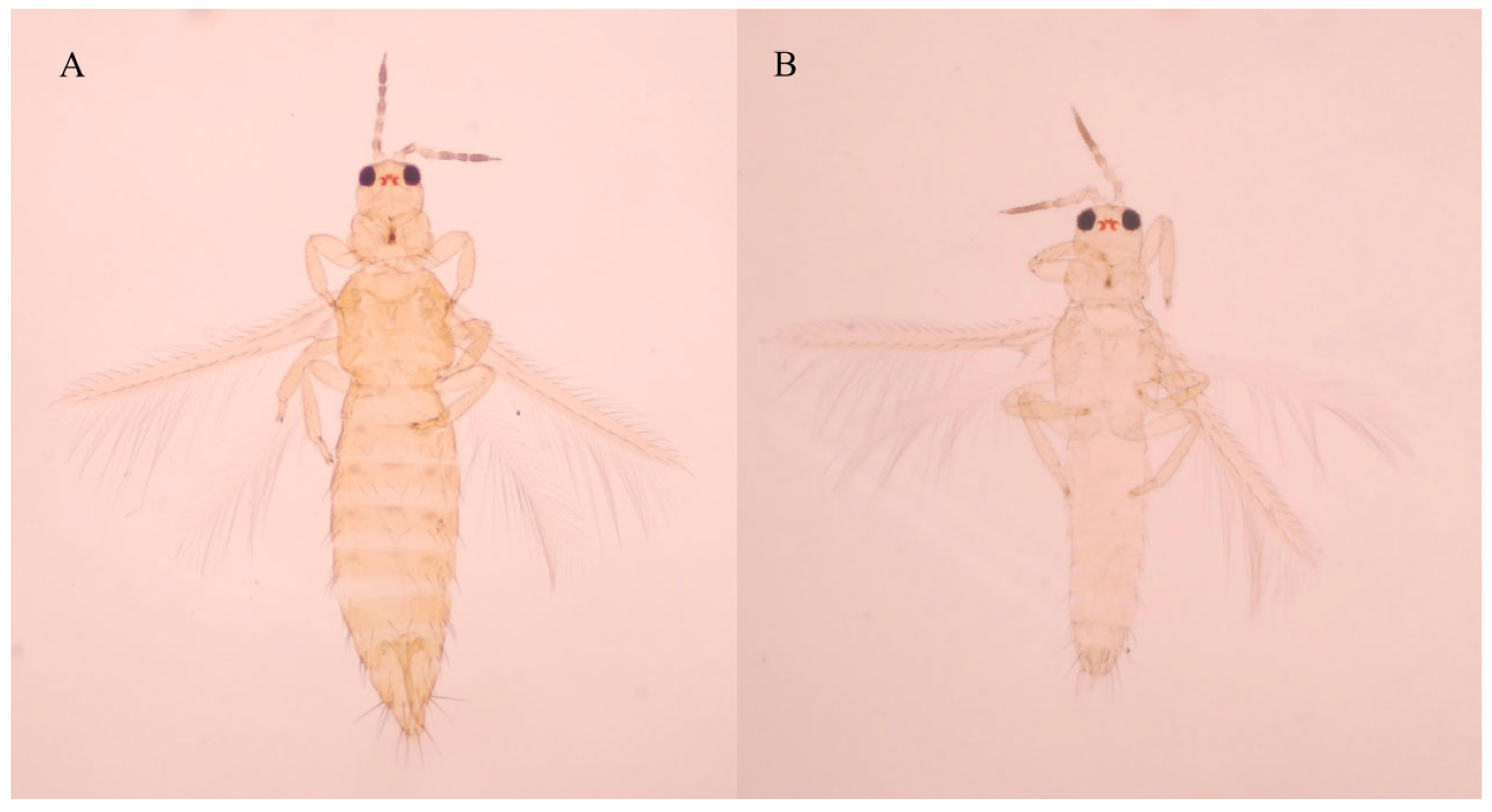 - Mound, L.A.; Wang, Z.; Lima, É.F.B.; Marullo, R. Problems with the concept of ‘pest’ among the diversity of pestiferous thrips. Insects 2022, 13, 61. [Google Scholar] [CrossRef]