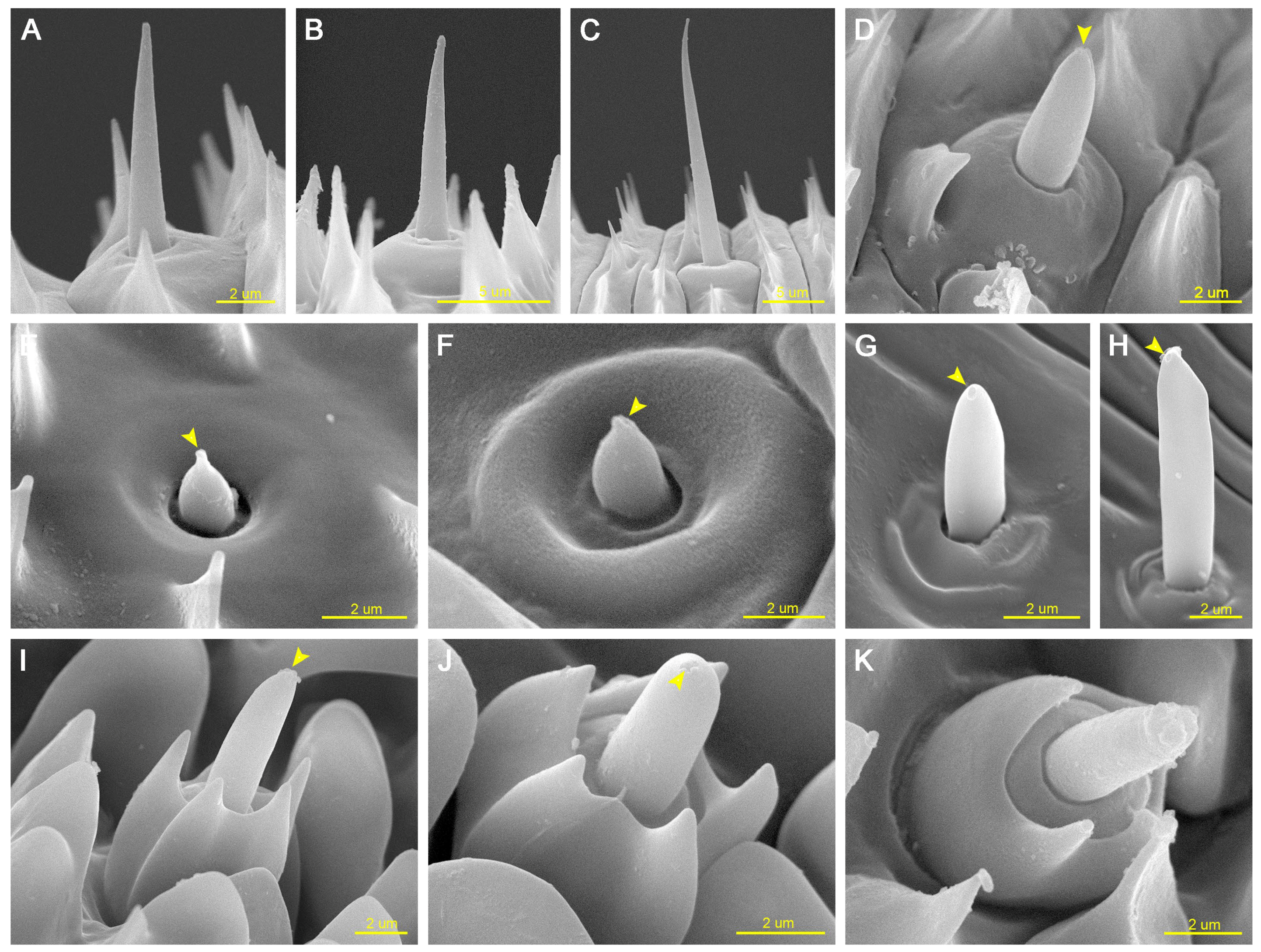 - Ma, L.Y.; Hu, K.; Li, P.D.; Liu, J.Q.; Yuan, X.Q. Ultrastructure of the proboscis sensilla of ten species of butterflies (Insecta: Lepidoptera). PLoS ONE 2019, 14, e0214658. [Google Scholar] [CrossRef] [PubMed]