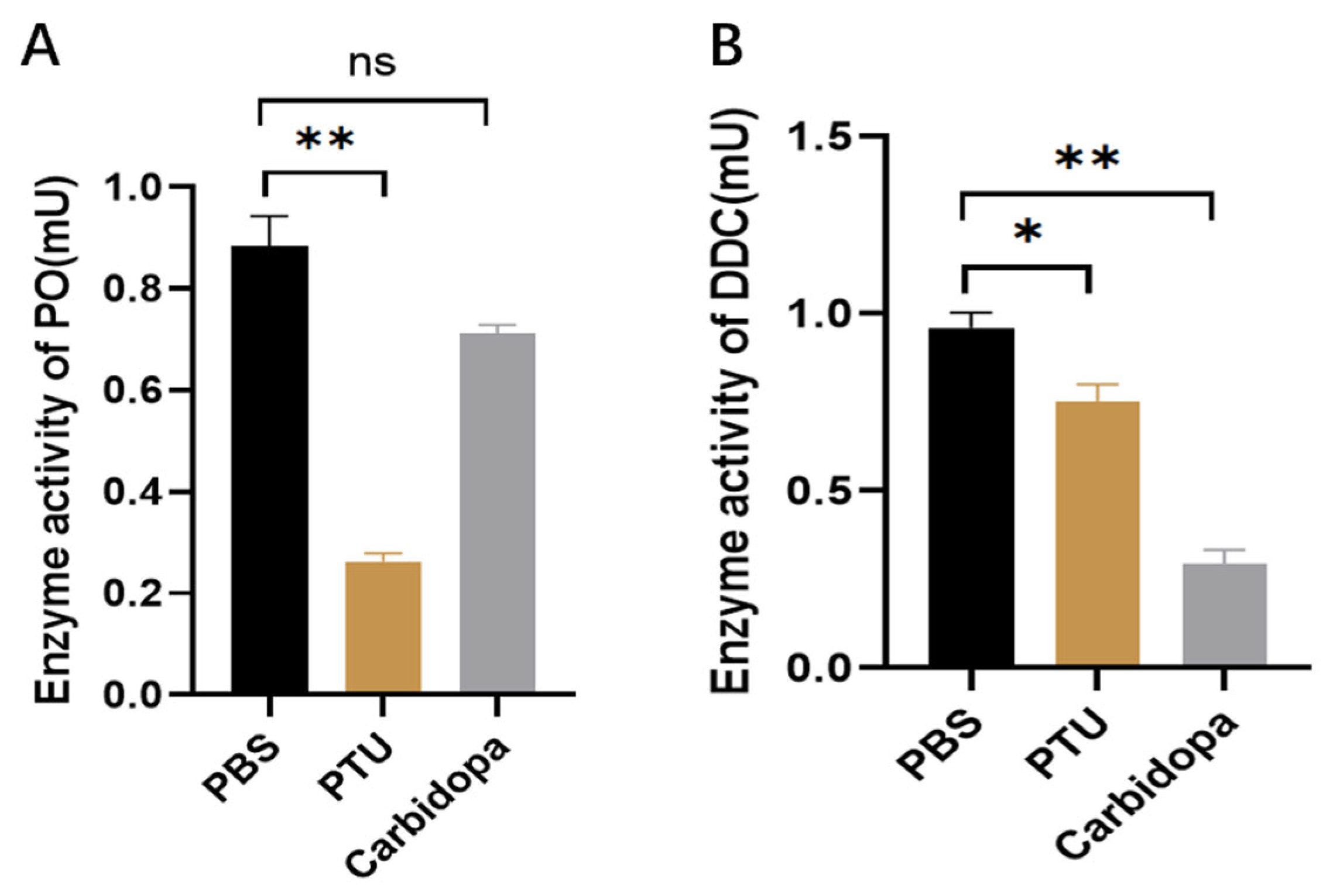 2.4. Determination of DDC Activity and Dopamine Content