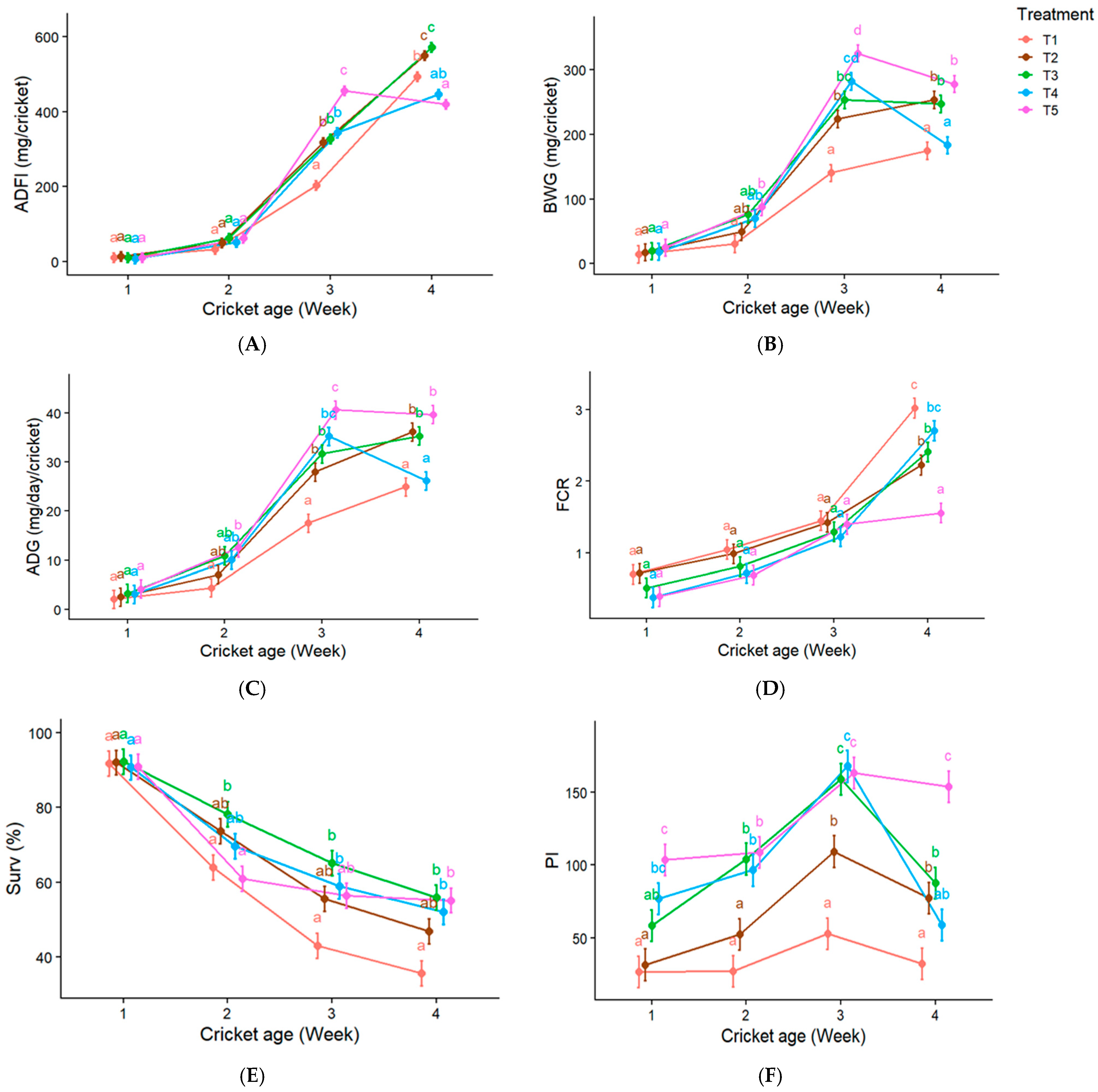 2.6.2. Repeated-Measures Analysis of Feed Intake in Crickets Under T5