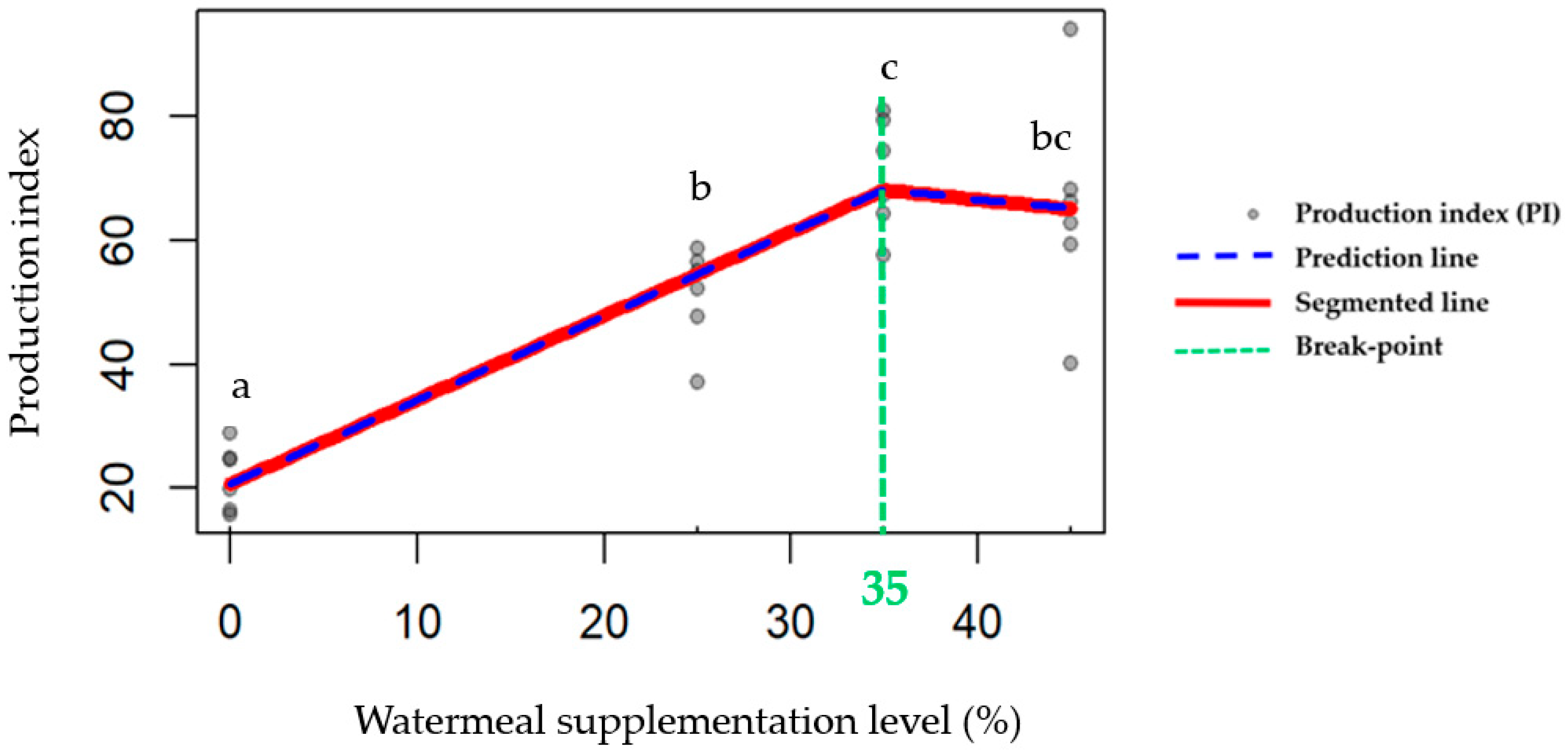 - Wu, Y.; Cao, J.; Tang, J.; Yang, Y.; Hou, S.; Wen, Z. Determination of methionine requirement for Pekin ducks: An integrated linear broken line and quadratic polynomial regression approach. Front. Anim. Sci. 2025, 6, 1727330. [Google Scholar] [CrossRef]
