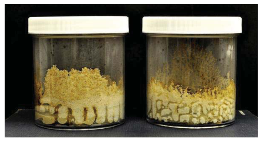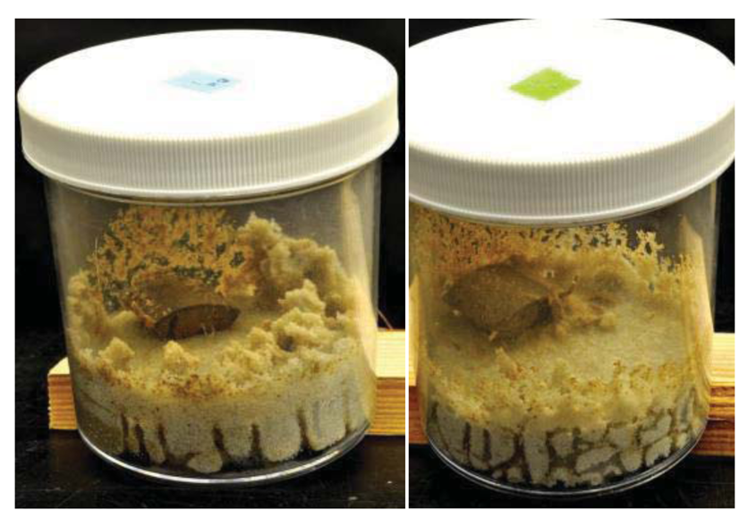 Termites were collected from two different field sites: C. gestroi from Kalaeloa (formerly Barber's Point Naval Air Station) on the southwest side of the Island of Oahu, Hawaii, and C. formosanus from colonies located on the Manoa campus of the University of Hawaii. Termites were collected using techniques modified from those of [15] and [16]. Two hundred live termites (180:20, workers:soldiers) were placed into each test container. The jar tops were replaced loosely. The jars were placed in an unlighted incubator at 28 °C and 72–80% RH for four weeks. Every week, all jars were visually inspected and tunneling patterns and termite activities were recorded.
