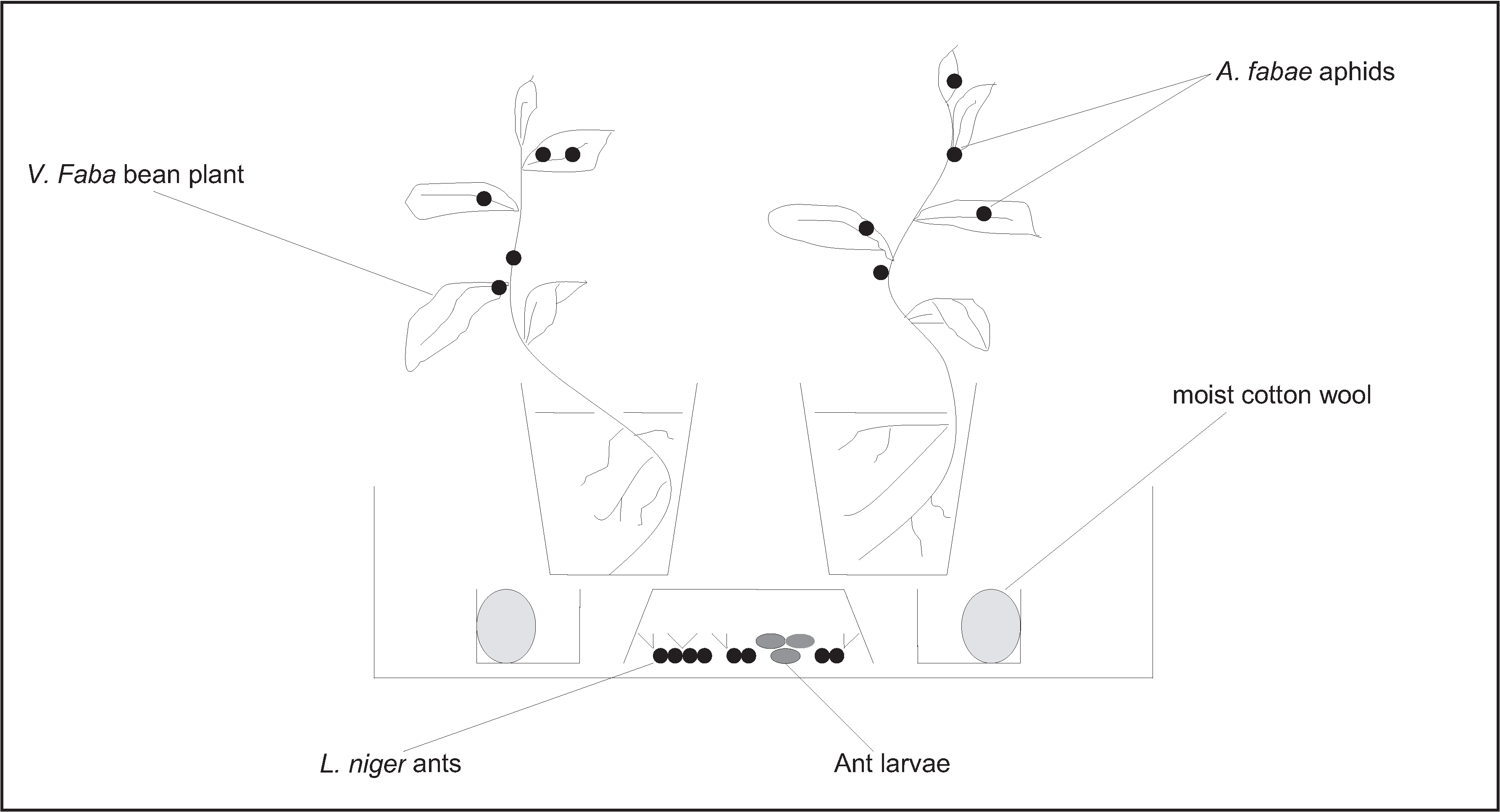 - Banks, C.J. Effects of the ant Lasius niger L., on insects preying on small populations of Aphis fabae Scop. on bean plants. Ann. Appl. Biol. 1962, 50, 669–679. [Google Scholar] [CrossRef]