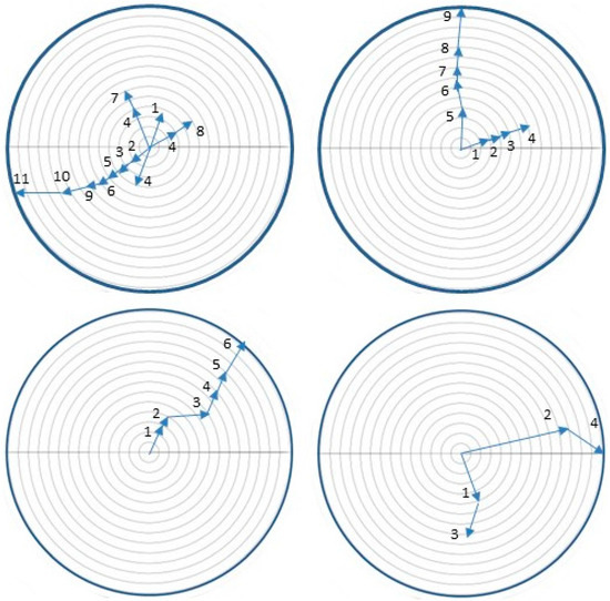 Representative examples of trail marking by colonies of Cactoblasts cactorum caterpillars abandoning egg sticks attached to paper arenas.