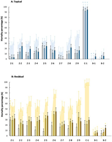 - Dagli, F.; Bahsi, S.U. Topical and residual toxicity of six pesticides to Orius majusculus. Phytoparasitica 2009, 37, 399–405. [Google Scholar] [CrossRef]
