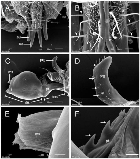- Ngern-Klun, R.; Sukontason, K.; Methanitikorn, R.; Vogtsberger, R.C.; Sukontason, K.L. Fine structure of Chrysomya nigripes (Diptera: Calliphoridae), a fly species of medical importance. Parasitol. Res. 2007, 100, 993–1002. [Google Scholar] [CrossRef] [PubMed]