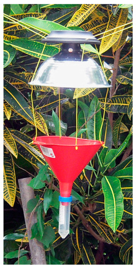 As part of the University of Hawaii Termite Project’s Educate to Eradicate program, partner teachers and students in public schools (citizen scientists) participated in alate light-trapping. The Educate to Eradicate program targets schools and adult continuing education programs to raise termite prevention and treatment knowledge in order to promote broad-scale termite control in Hawaii [33,34]. Citizen science projects allow for increased data collection, aid in answering scientific questions, provide educational outreach, and promote scientific literacy [35]. However, citizen science projects may require increased effort to overcome possible problems, such as varied skill levels of participants, and data accuracy [35]. These possible problems may be addressed by testing protocols and educational materials, training participants, and vetting data [35].