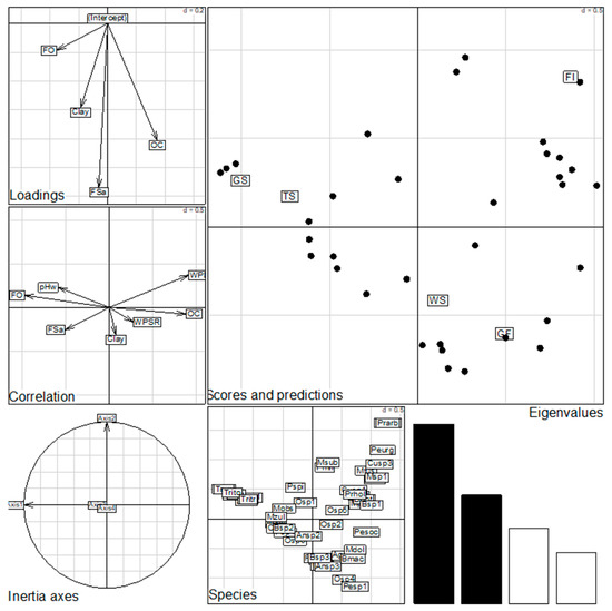 - Ter Braak, C.J.F. Canoco—A Fortran Program for Canonical Community Ordination by (Partial) Detrended (Canonical) Correspondence Analysis Principal Components Analysis and Redundancy Analysis (Version 2.1); Agricultural Mathematics Group: Wageningen, The Netherlands, 1988. [Google Scholar]