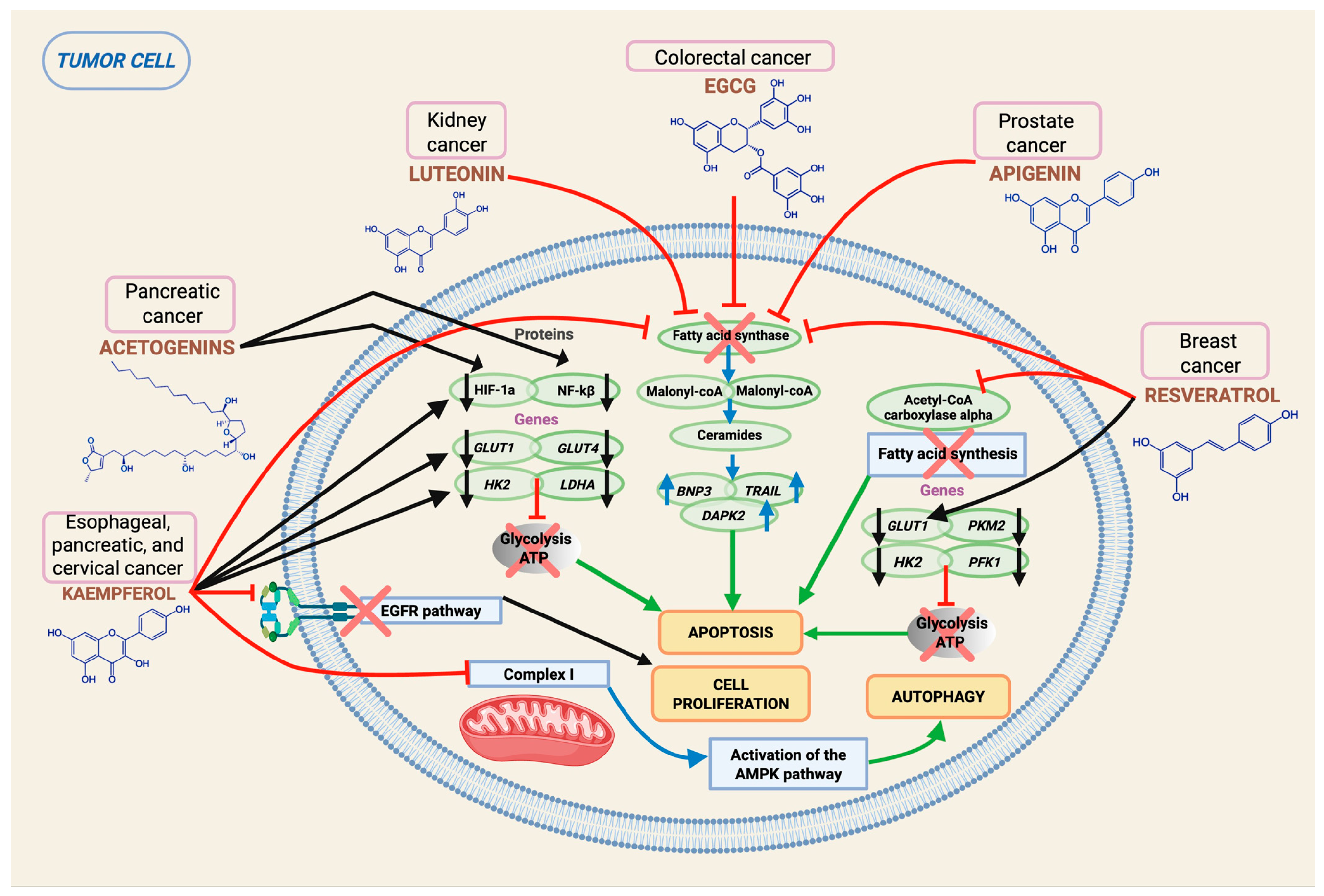 - Yao, S.; Wang, X.; Li, C.; Zhao, T.; Jin, H.; Fang, W. Kaempferol inhibits cell proliferation and glycolysis in esophagus squamous cell carcinoma via targeting EGFR signaling pathway. Tumor Biol. 2016, 37, 10247–10256. [Google Scholar] [CrossRef]