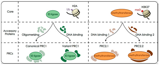 2.2. PRC1 and PRC2 Are Made of a Catalytic Module and Associated Accessory Subunits
