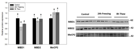 2.3. Methyl-CpG Binding Protein Expression Unchanged across the Freeze-Thaw Cycle