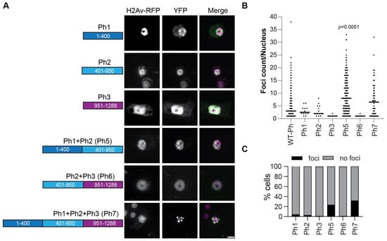 2.4. Removal of IDRs Affects Ph Condensate Size, Number, and Morphology