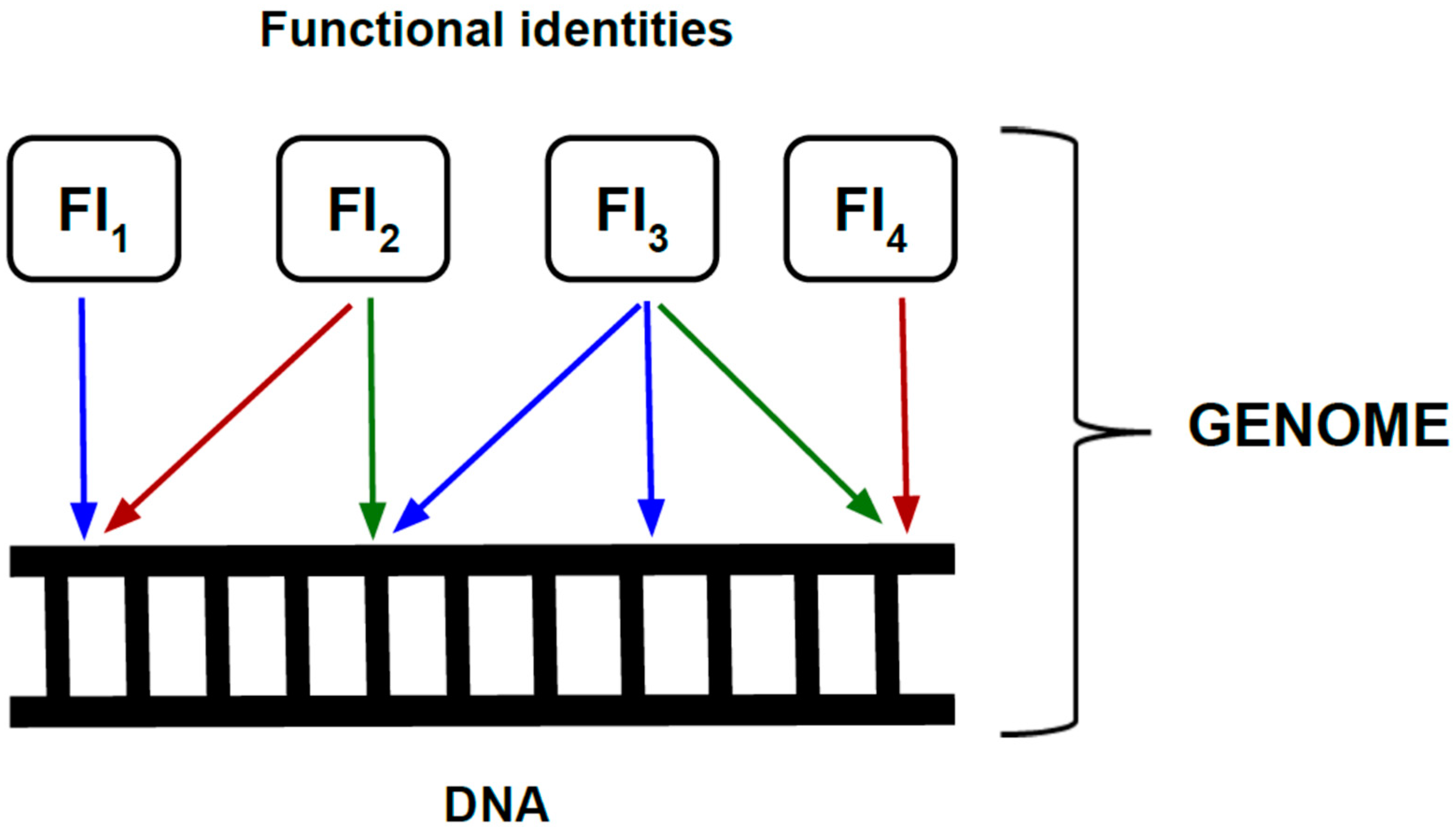 | Functional identity | The functional role a DNA element acquires in a given context—such as enhancer, promoter, silencer, insulator, or coding region—emerging from interactions among sequence, DNA-binding proteins, and chromatin environment and architecture. |