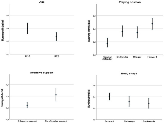 | Contextual and Tactical Dimensions | Running with the Ball vs. Receiving and Passing (Univariate Analysis) | Running with the Ball vs. Receiving and Passing (Multivariate Analysis) | ||