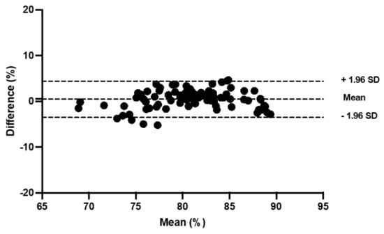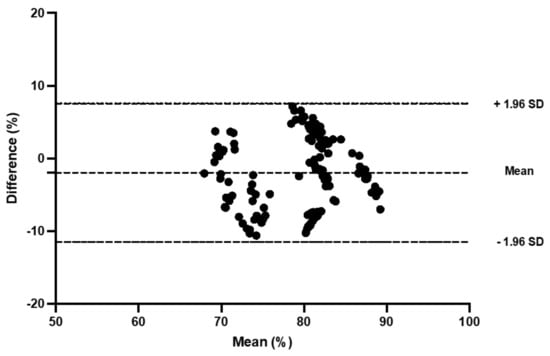 - Bland, J.M.; Altman, D.G. Statistical methods for assessing agreement between two methods of clinical measurement. Lancet 1986, 1, 307–310. [Google Scholar] [CrossRef]