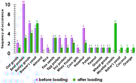 Figure 2 shows that in 9 out of 11 cases, after the load, the immunological reaction in the group of participants decreased, whereas in 5 cases, the load led to a bodily reaction to food components.