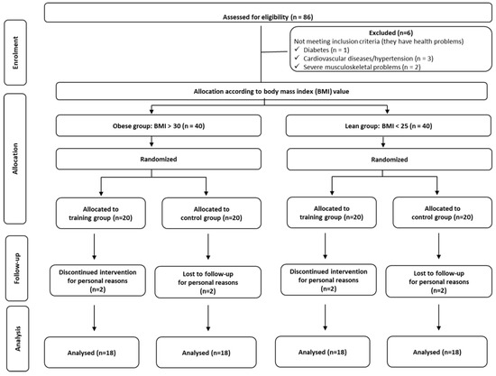 - Blake, A.L.; Miller, W.C.; Brown, D.A. Adiposity does not hinder the fitness response to exercise training in obese women. J. Sports Med. Phys. Fit. 2000, 40, 170–177. [Google Scholar] [CrossRef]