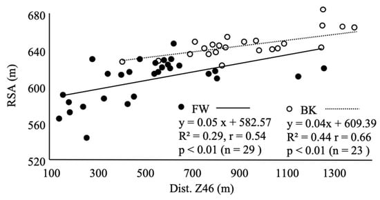 16]. Considering the effect of endurance factors on the run distance covered in high-intensity running, our findings suggest that a lower %Fat and a higher percentage of body muscle would benefit Dist. Z46 during a match. To further understand the effects of physical characteristics (height and weight, %Fat, %Muscle, and BMI) on running performance in the match, partial correlation analysis was used with physical characteristics as an adjustment variable. As a result, RSA significantly correlated with Dist. Z46 in the match (r = 0.63) in BKs. This shows that the ability for Dist. Z46 during a match is better reflected by RSA.