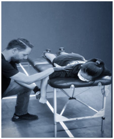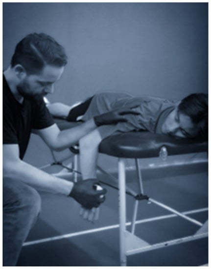 During the tests, the participants assumed a specific posture with their elbows extended and bent at a 90-degree angle, creating a foundation for accurate assessments (see Figure 1 and Figure 2). The tester played a crucial role, firmly supporting the humerus against the stretcher, while the participants used their opposite arm to lend additional support. By carefully locating anatomical landmarks on the forearm’s posterior surface, the HHD (placed just posterior to the ulnar styloid process) accurately measured the strength of external rotation. For internal rotation strength, the HHD was positioned on the forearm’s anterior surface, proximal to the ulnar styloid process [].