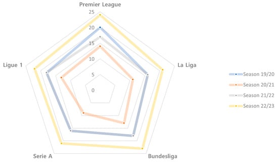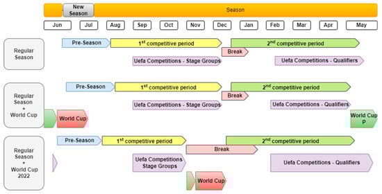 - Silva, J.R. The Soccer Season: Performance Variations and Evolutionary Trends. PeerJ 2022, 10, e14082. [Google Scholar] [CrossRef] [PubMed]