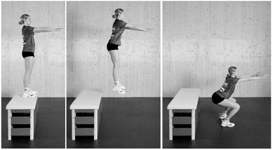 Depth drops (DD) were performed as a set of five repetitions from a 60 cm box and with an active landing and a depth not deeper than 90° of knee flexion.