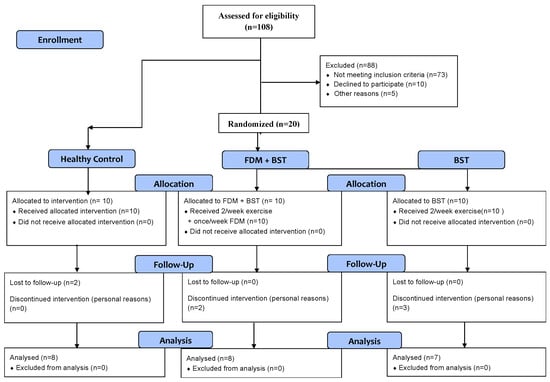 - Lee, J.K.; Kim, C.M. Comparison of Maximum Isometric Strength, Proprioceptive, Dynamic Balance, and Maximum Angle by Applying the Fascial Distortion Model to Chronic Ankle Instability Subjects. J. Korean Phys. Ther. 2021, 33, 224–230. [Google Scholar] [CrossRef]