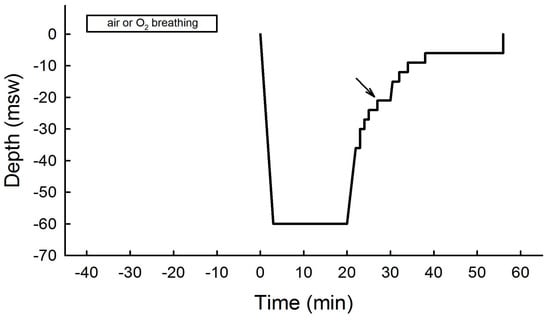 - Bosco, G.; Yang, Z.J.; Di Tano, G.; Camporesi, E.M.; Faralli, F.; Savini, F.; Landolfi, A.; Doria, C.; Fanò, G. Effect of in-water oxygen prebreathing at different depths on decompression-induced bubble formation and platelet activation. J. Appl. Physiol. 2010, 108, 1077–1083. [Google Scholar] [CrossRef] [PubMed]