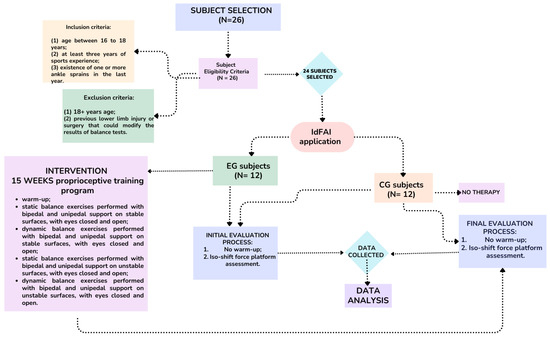 The subjects were junior handball players (16.4 ± 0.52 years age) with a history of one or more ankle sprains. We used the following inclusion criteria: (1) age between 16 and 18 years, (2) at least three years of sports experience, and (3) the existence of one or more ankle sprains in the last year. The exclusion criteria were as follows: (1) 18+ years age, and (2) previous lower limb injury or surgery that could modify the results of balance tests.