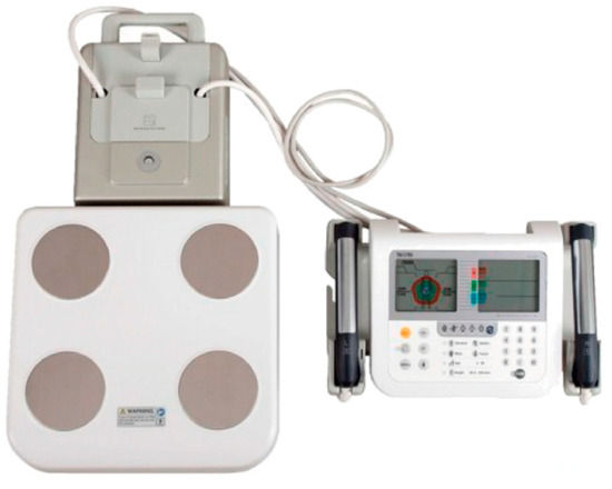 The tool used for the BIA was the MC-780A TANITA (TANITA Corporation, Tokyo, Japan) (Figure 2). This tool is demonstrated to accurately estimate body composition [13]. Participants reached the Research Center on Motor Activities of the University of Catania early in the morning after fasting from food and liquids for at least 8 h; overnight fasting was included, and breakfast was skipped by each participant.