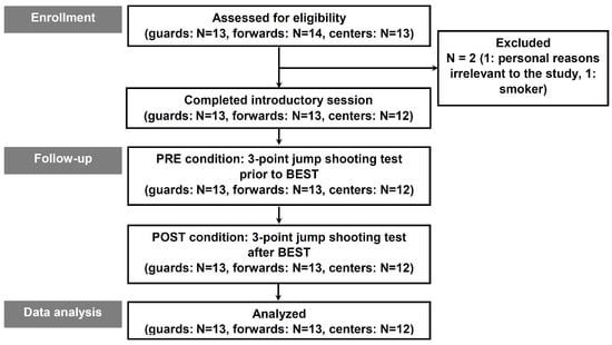 Schematic representation of the study’s experimental framework. Abbreviations: BEST, basketball exercise simulation test; N, sample size of the groups.