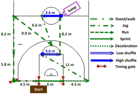 Description of the basketball exercise simulation test (BEST) as per reference [47].