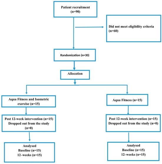 This study was experimental in nature and conducted at the Academy of Physical Education in Krakow, Poland. In accordance with the assumptions for conducting the pedagogical experiment, the researchers’ intervention involved manipulating the aqua fitness training process through the implementation of a standard training program supplemented with isometric exercises which consist of maximally tensing the muscles without changing their length (Table 1). To conduct the experiment, a technique involving working in two equally sized groups of the qualified group of women was applied. The project participants were randomly divided (randomization) into two groups, a control group and an experimental group, each consisting of 15 individuals.