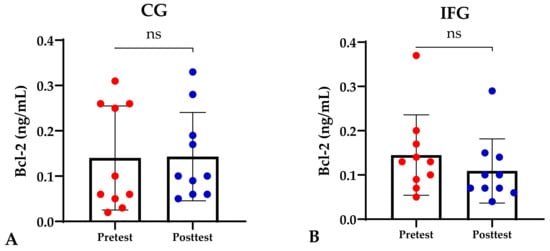 | ∆-Bcl-2 (ng/mL) | 0.01 ± 0.17 | −0.04 ± 0.14 | −0.04 ± 0.15 | −0.07 ± 0.09 | 0.676 ≠ |