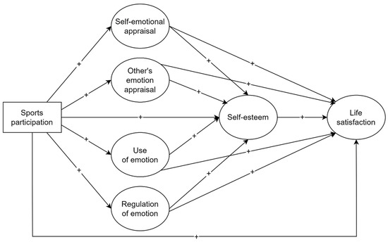 Sports participation was positively associated with self-emotional appraisal and the use of emotion. All three emotional intelligence factors included in the model were positively associated with self-esteem, whereas only self-emotional appraisal and the use of emotion variables had direct, positive effects on life satisfaction. As expected, self-esteem was positively related to life satisfaction.