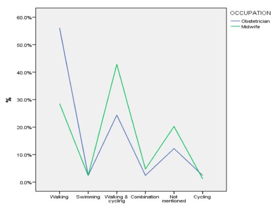 - Crampton, J.S.; O’Brien, S.; Heathcote, K. Recreational exercise during pregnancy: Attitudes and beliefs of midwives and physiotherapists. Br. J. Mid. 2018, 26, 455–461. [Google Scholar] [CrossRef]