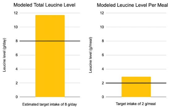 | Body Mass (kg) [52] | Energy Requirements (kcal/day) [52] | Absolute Protein Requirements (g/day) [55] | Modeled Absolute Protein Levels (g/day) | Modeled Relative Protein Levels (g/kg/day) | Modeled Absolute Leucine Levels (g/day) [59] | Modeled Leucine Levels per Meal (g) |