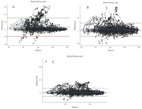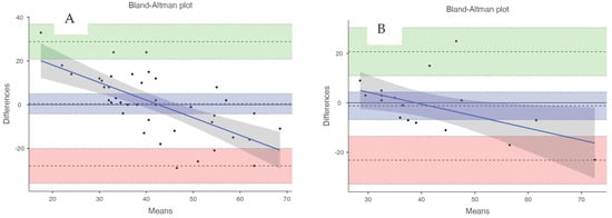 - Taffe, P. When can the Bland & Altman limits of agreement method be used and when it should not be used. J. Clin. Epidemiol. 2021, 137, 176–181. [Google Scholar] [CrossRef] [PubMed]