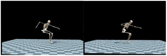 Biomechanical analysis of two distinct billiard stroke techniques for wheelchair-user players was conducted using contemporary methodologies, such as OpenCap (Figure 2). For OpenCap (opensimModel: LaiArnoldModified2017_poly_withArms_weldHand, posemodel: openpose, augmentermodel: v0.2), the setup involved synchronizing cameras from two iOS devices with a web application running on a standard laptop, capturing videos at a rate of 60 Hz. The OpenCap methodology involved several steps for estimating movement dynamics from videos, including camera calibration, video collection and processing, marker position estimation, kinematics estimation, and the generation of physics-based dynamic simulations of movements. This comprehensive pipeline was implemented in Python (v3.7.10), and the OpenCap web application provided a user-friendly interface, guiding users through each step. Cloud instances were utilized for the computational processes.