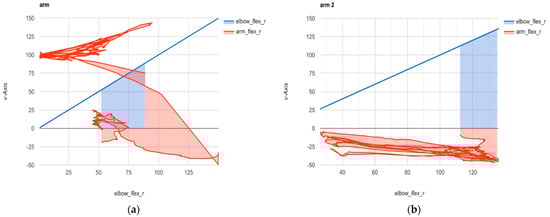The kinematic diagram of two motor actions—the player’s stroke arm in the “vertical” (a) and “horizontal” (b) shot techniques for wheelchair users.