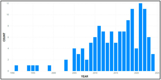 The CSV (Comma Separated Values) file obtained from Scopus was imported into VOSviewer (1.6.20.0) to apply the bibliometric analysis techniques mentioned earlier. Furthermore, after converting the file to an Excel (xls) format, it was imported into Microsoft Power BI for visualizing the documents per year. Power BI is a business intelligence tool tailored for visualizing statistical data [31,32].