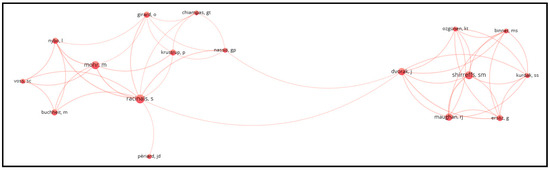 Figure 2 illustrates the co-authorship analysis with authors as the unit of analysis. This analysis employed two constraints: (a) only authors with at least two documents and (b) only authors who are connected to each other. The analysis reveals two main clusters of authors who collaborate closely. The connections between the authors indicate collaboration and the flow of information among various research groups. Authors such as Racinais, Shirreffs, Dvorak, and Nassis seem to have several collaborations within the network.