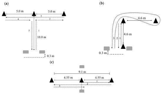 After the completion of the warm-up, the participants had a five-minute recovery period before beginning the first COD test. For each COD test, the participants performed two familiarization trials at a moderate-intensity pace. Then, the subjects performed three recorded attempts of each COD test at maximal effort. The participants were given 1–2 min of rest between each attempt and approximately 10 min of rest between each COD test. Each COD test was performed on a volleyball court and each participant wore their competition footwear during the testing. Times for all three COD tests were measured via the same timing gate system (TCi system, Brower Timing Systems, Draper, UT, USA). During testing, there were two Certified Strength and Conditioning Specialists present to ensure that the participants maintained proper technique. To successfully complete each test, the participant had to touch the cone at each change in direction point. In the event of an unsuccessful attempt, the participant was permitted one additional attempt. If the participant experienced an egregious error such as tripping or falling, they were also given another attempt (n = 0).