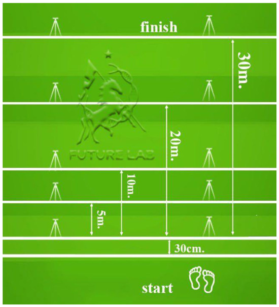 It is clear that the distance to the start line can have a significant impact on the final result. In sprint tests, the most commonly used starting distances are 30 [14,19], 50 [20,21,22] and 100 cm [23,24]. Is it possible to compare sprint results over different distances (most commonly 5, 10, 20 and 30 m) when the starting distances are so different? It is likely that there will be differences in results, but the extent of these differences remains unknown. To the best of the authors’ knowledge, no studies have specifically investigated the effect of start distance on sprint and change of direction tests in elite soccer players. We were only able to identify two studies that investigated the effect of different starting distances on sprinting, change of direction and dribbling performance in adult university athletes [25] and youth soccer players [26]. This practical gap motivates the present work, as quantifying the effect can help practitioners interpret and harmonise results obtained under different protocols. We selected 30 cm and 100 cm because both are widely used in academy testing and bracket the practical range—from a near-standing, toe-on-line stance to a short rolling approach—allowing us to isolate the effect within current practice.