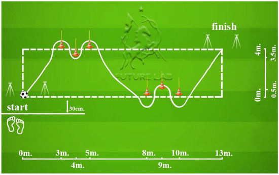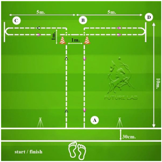 - Krolo, A.; Gilic, B.; Foretic, N.; Pojskic, H.; Hammami, R.; Spasic, M.; Uljevic, O.; Versic, S.; Sekulic, D. Agility Testing in Youth Football (Soccer)Players; Evaluating Reliability, Validity, and Correlates of Newly Developed Testing Protocols. Int. J. Environ. Res. Public Health 2020, 17, 294. [Google Scholar] [CrossRef]