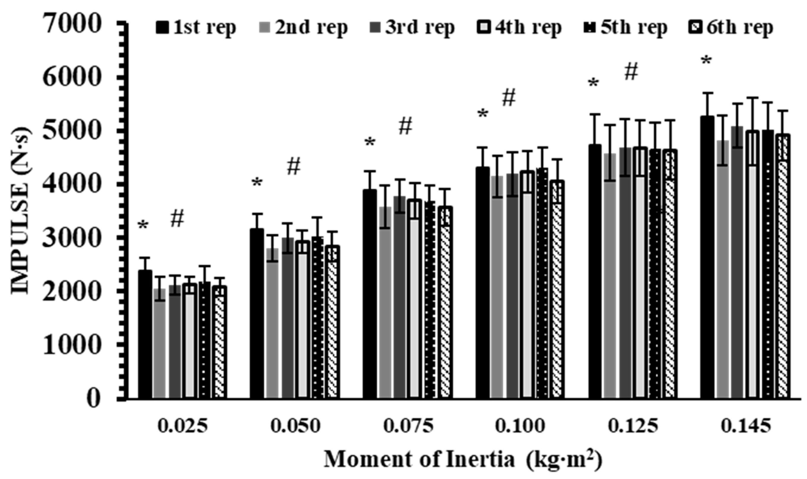 Inertial Load (kg∙m2) | Rep 1 | Rep 2 | Rep 3 | Rep 4 | Rep 5 | Rep 6 | Rep 1–6 | Total Impulse |