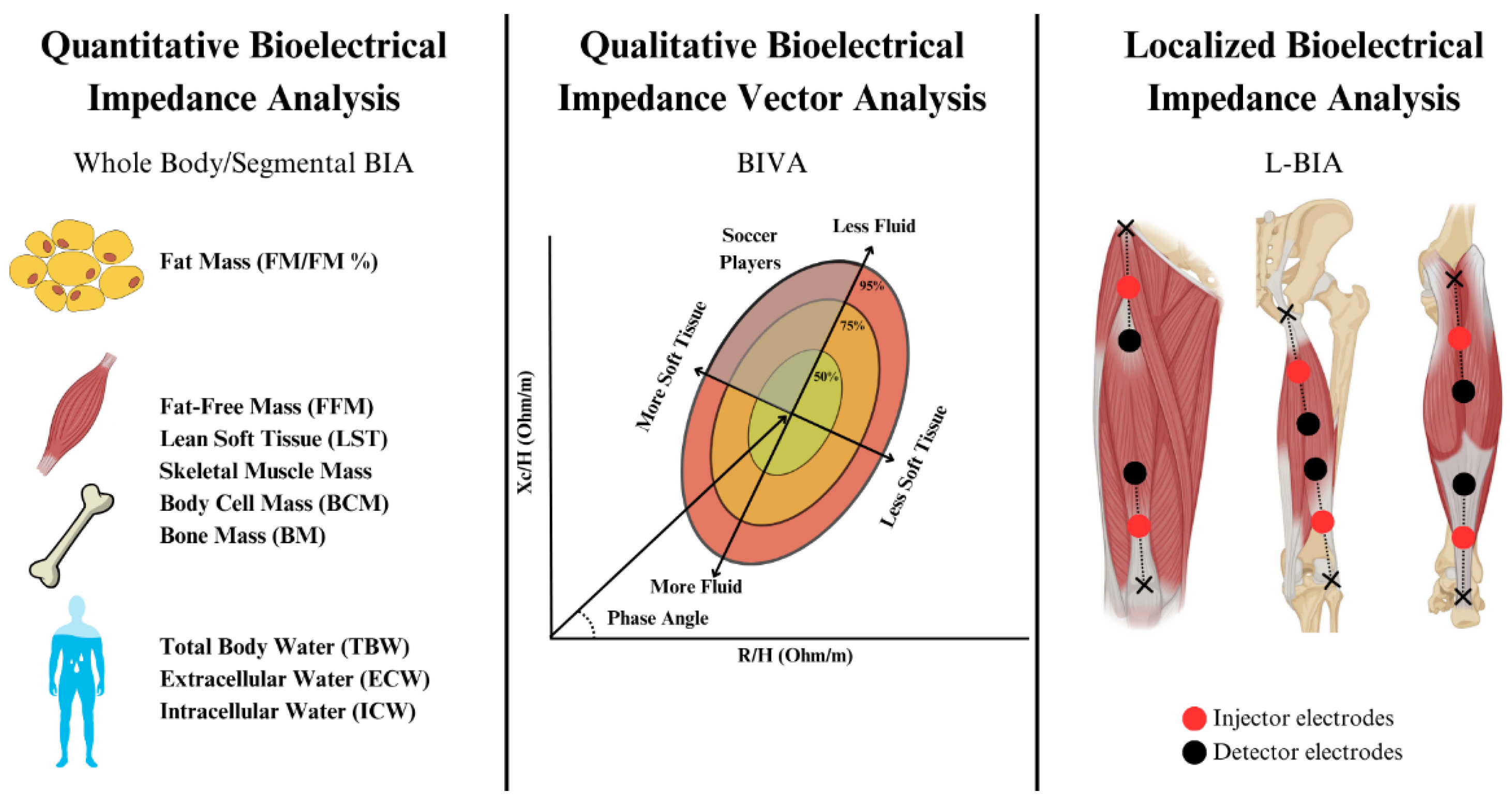 - Concept: Application of bioelectrical impedance analysis (BIA) to estimate body composition outcomes or report/analyze raw bioelectrical parameters.