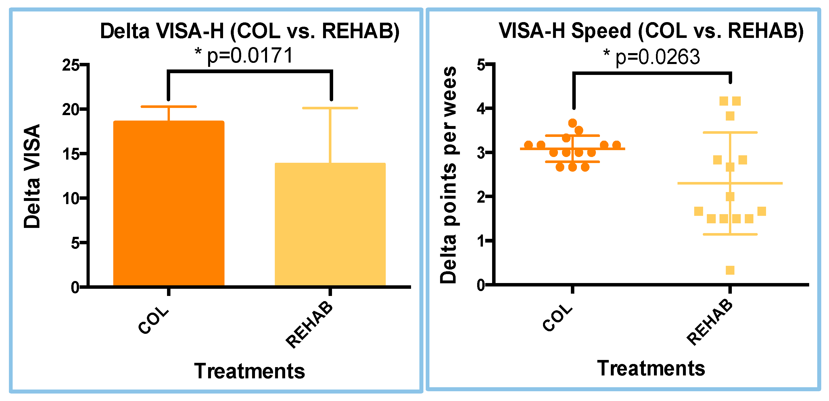 3.6. VISA-H Score Results in the REHAB Treatment