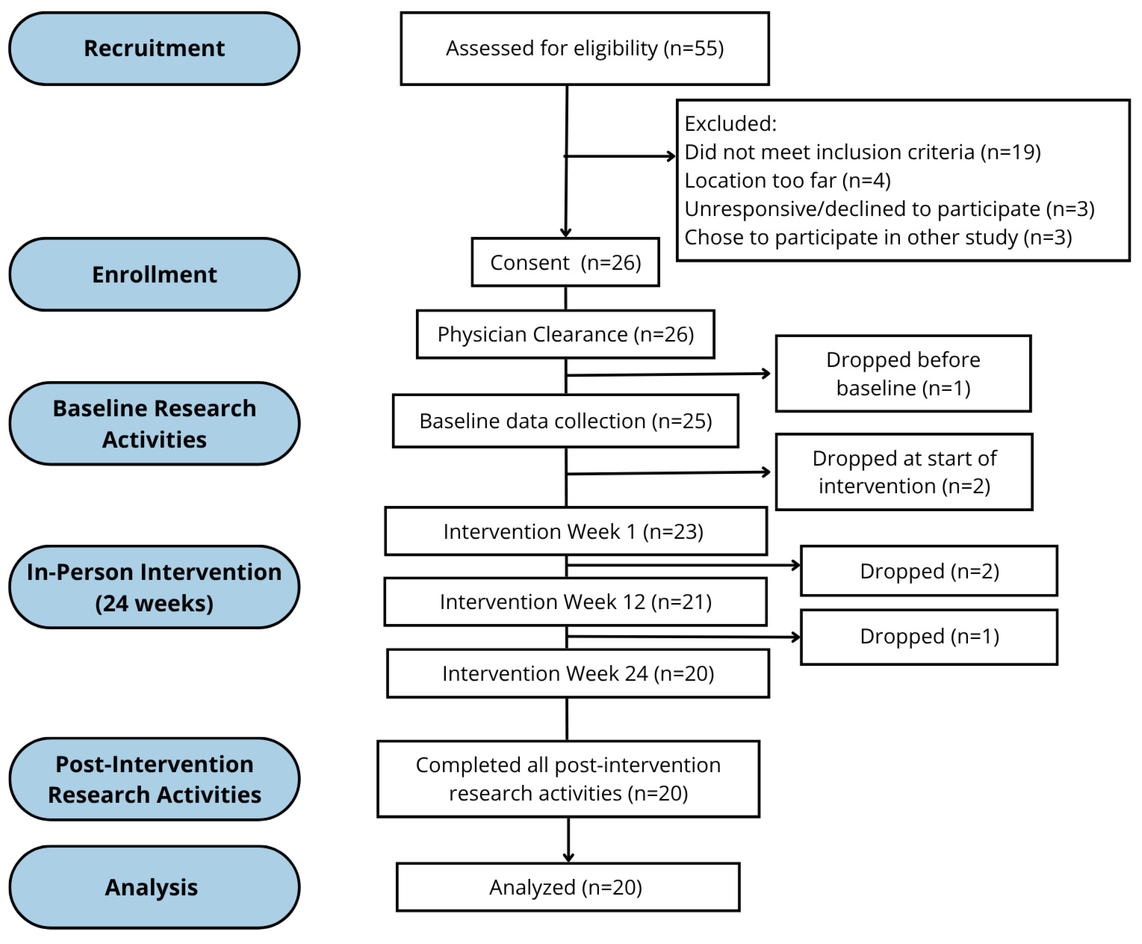 APA StyleKoon, L. M., Donnelly, J. E., Sherman, J. R., Rice, A. M., Clina, J. G., Thyfault, J., Handlery, R., Handlery, K., & Crawford, D. A. (2025). Feasibility and Preliminary Effects of Community-Based High-Intensity Functional Training for Adults with Mobility Disabilities and Overweight/Obesity: A Pilot Study. Sports, 13(10), 361. https://doi.org/10.3390/sports13100361