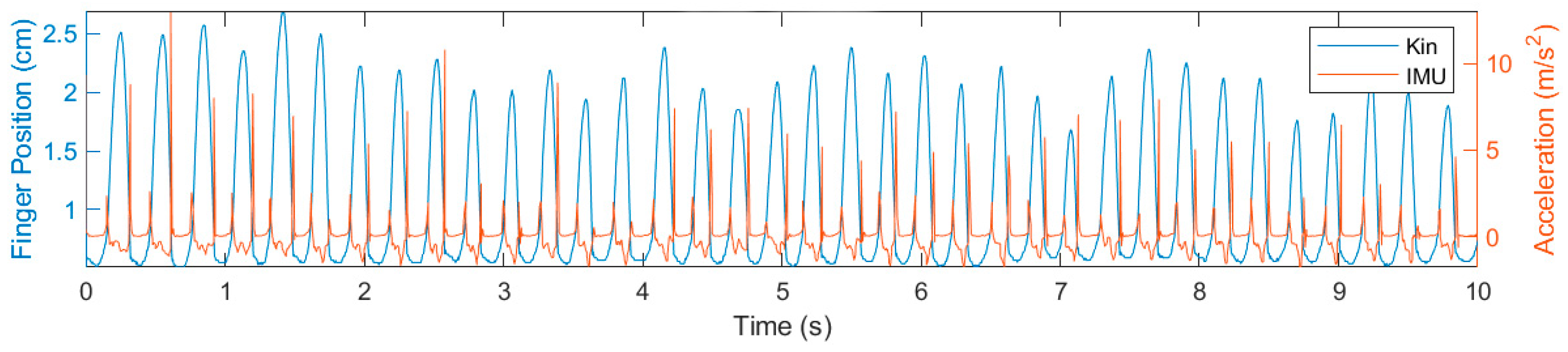 - Djurić-Jovičić, M.; Jovičić, N.S.; Roby-Brami, A.; Popović, M.B.; Kostić, V.S.; Djordjević, A.R. Quantification of Finger-Tapping Angle Based on Wearable Sensors. Sensors 2017, 17, 203. [Google Scholar] [CrossRef]